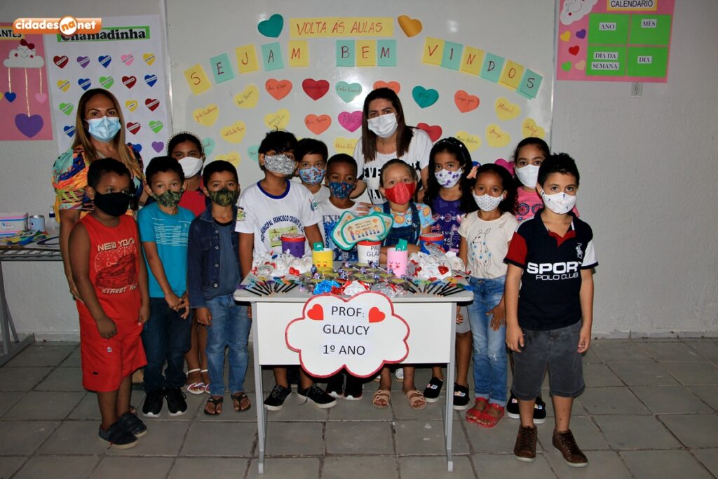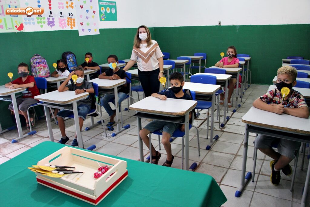 Além de encontrarem as escolas de cara nova, no primeiro dia de aula presencial, os alunos também foram recepcionados pelos professores e toda equipe das unidades de ensino, de forma especial, com direito a ornamentação, lembrancinhas e lanches.