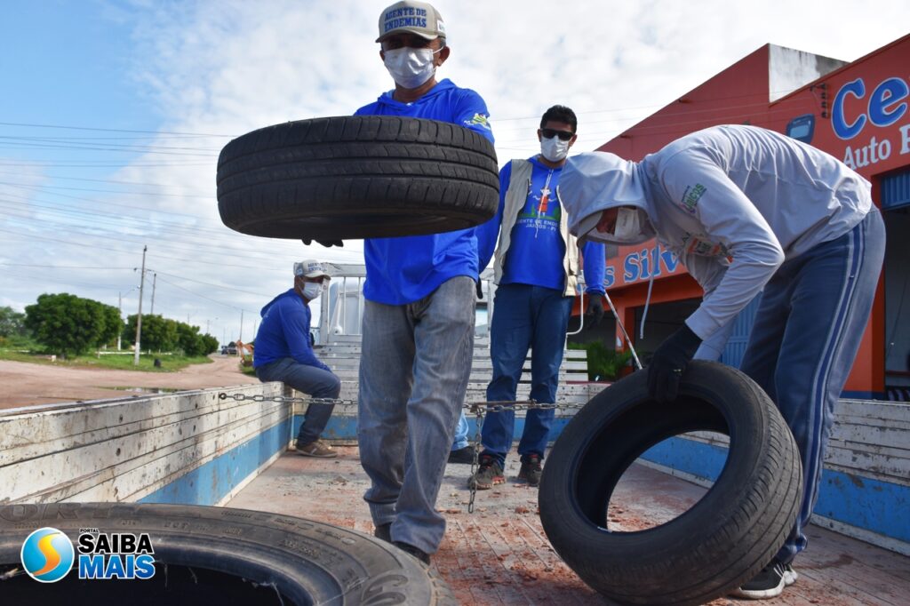 A ação de recolhimento de pneus foi realizada em borracharias, oficinas e terrenos baldios.